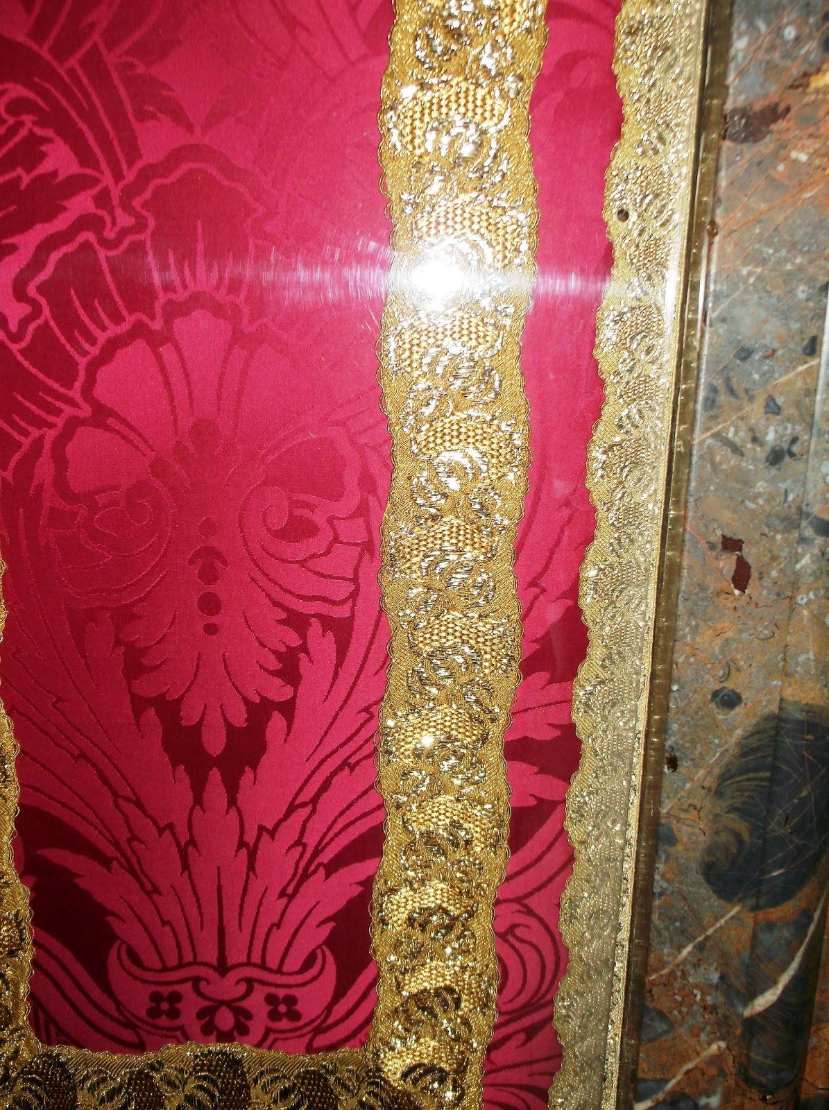 | This golden border on the velvet wallpaper was woven with genuine gold thread. The velvet wallpaper was only used in the winter. It was replaced with silk wallpaper in the summer months. |